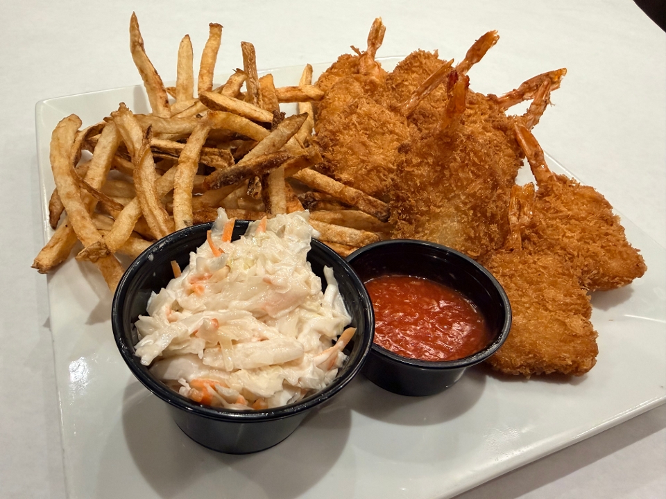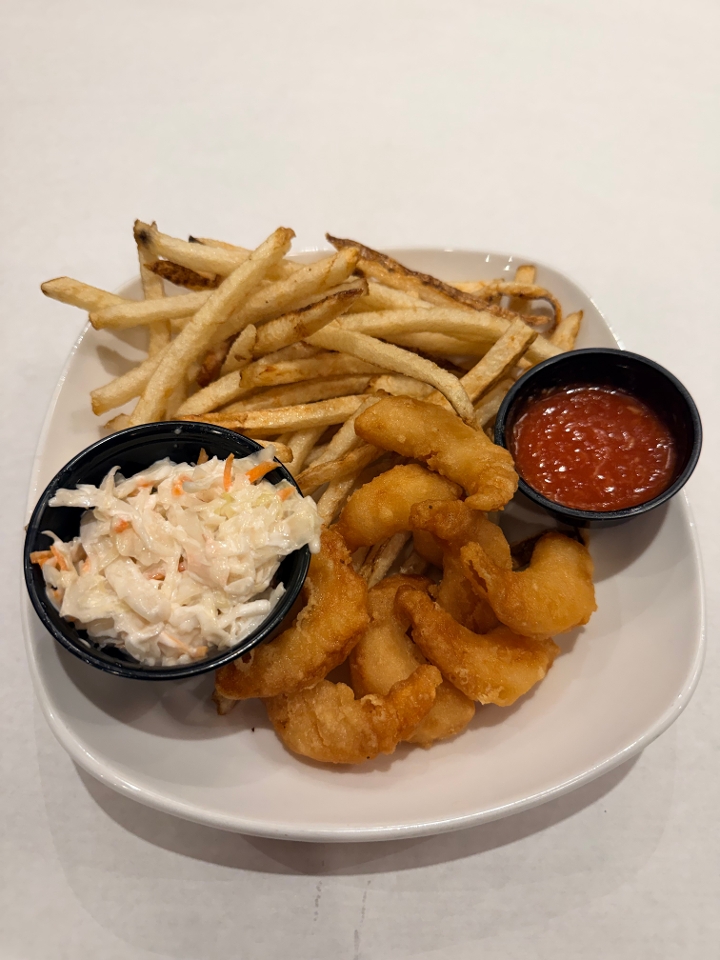 10 Breaded Butterflied Shrimp served with fries, coleslaw & cocktail sauce.